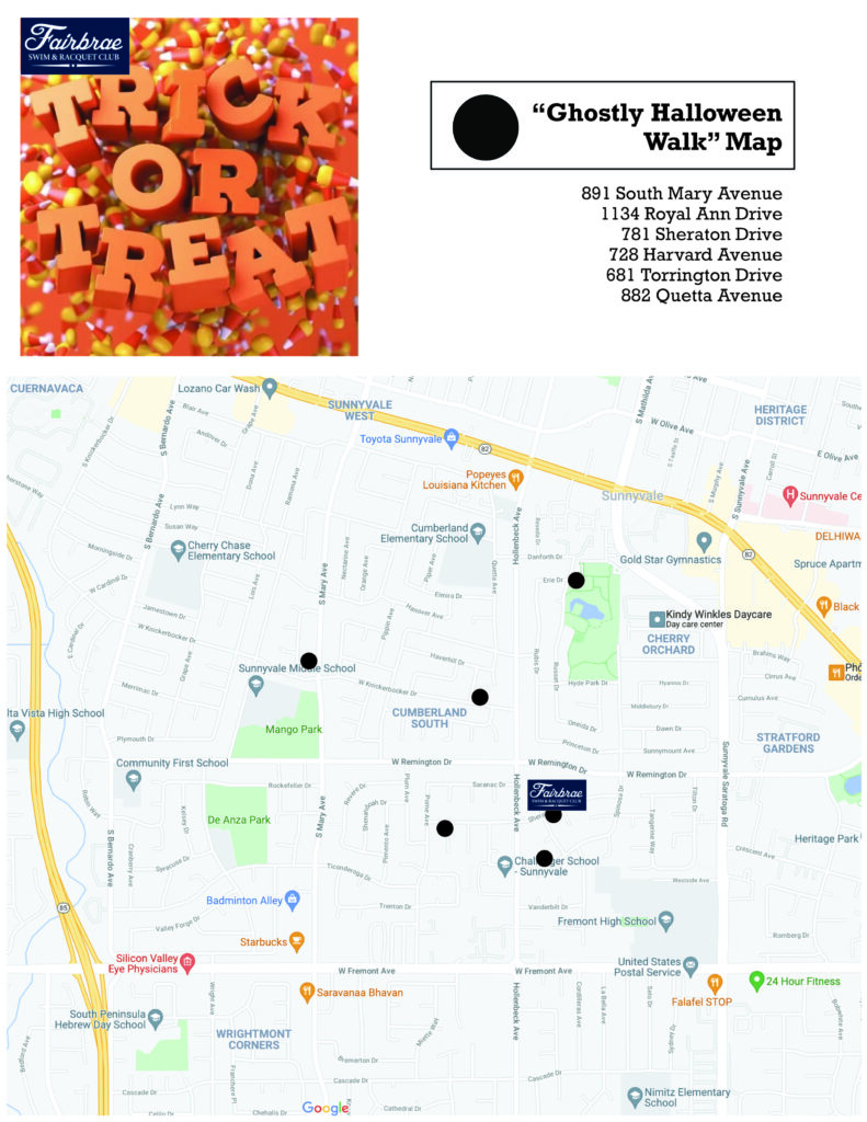 28 Oct 2021 2021 Fairbrae “Ghostly Halloween Walk” Map Is HERE! by Anne Branch (Staff) | posted in: Events | 0 Thank you to our member, Irina D. for creating our “Ghostly Halloween Walk” map. Hope everyone has a safe Halloween and visits these “spooky” Fairbrae family homes. Happy Halloween!