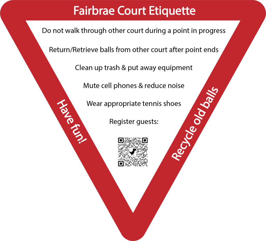 If you’d like to review the rules, please go to the Racquet page. As always, if you have any suggestions, issues, or concerns that are court related, please email us at racquet@fairbrae.com.